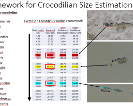 이 접근 방식은 비침습적이고 비용 효율적이며 외딴 곳이나 접근이 어려운 지역에서도 작동할 수 있다는 점에서 혁신적입니다. 데이터 정확도 향상, 작업자 안전 강화, 향후 모니터링을 위한 영구적인 사진 기록 생성 등의 이점이 있습니다. 이 기술은 확장성이 뛰어나 기본적인 드론 운용 교육만 받으면 지역 사회와 환경 보호 이해관계자들이 쉽게 이용할 수 있습니다. 가장 큰 발전은 전 세계 악어 27종 중 17종의 크기 추정 모델을 개발하여 사용하기 쉬운 표(아바크)를 제공한 것입니다. 이 표는 원주민 및 지역 공동체(IPLC), 보존 실무자를 포함한 모든 이해관계자가 접근하고 이해할 수 있어 광범위한 채택을 촉진하고 다양한 사용자가 생물다양성 보존에 적극적으로 참여할 수 있도록 지원합니다.